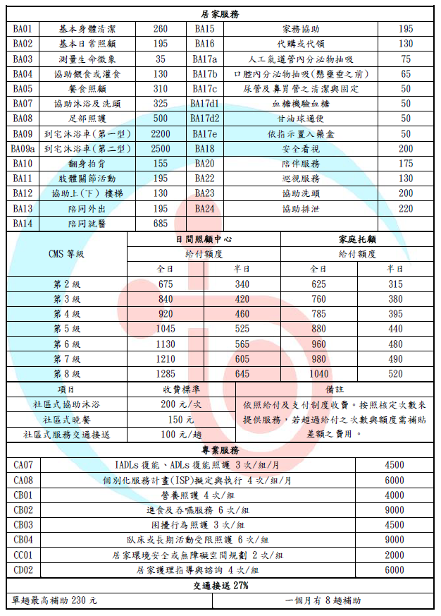 - 例如一般戶使用一次身體清潔,自付為16% x 260(元) = 41元