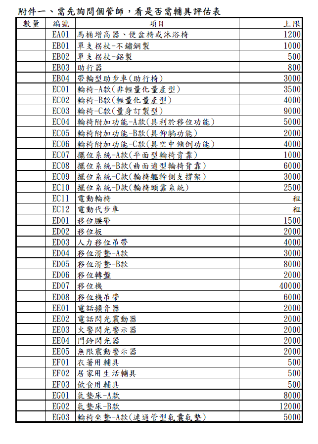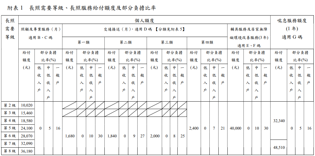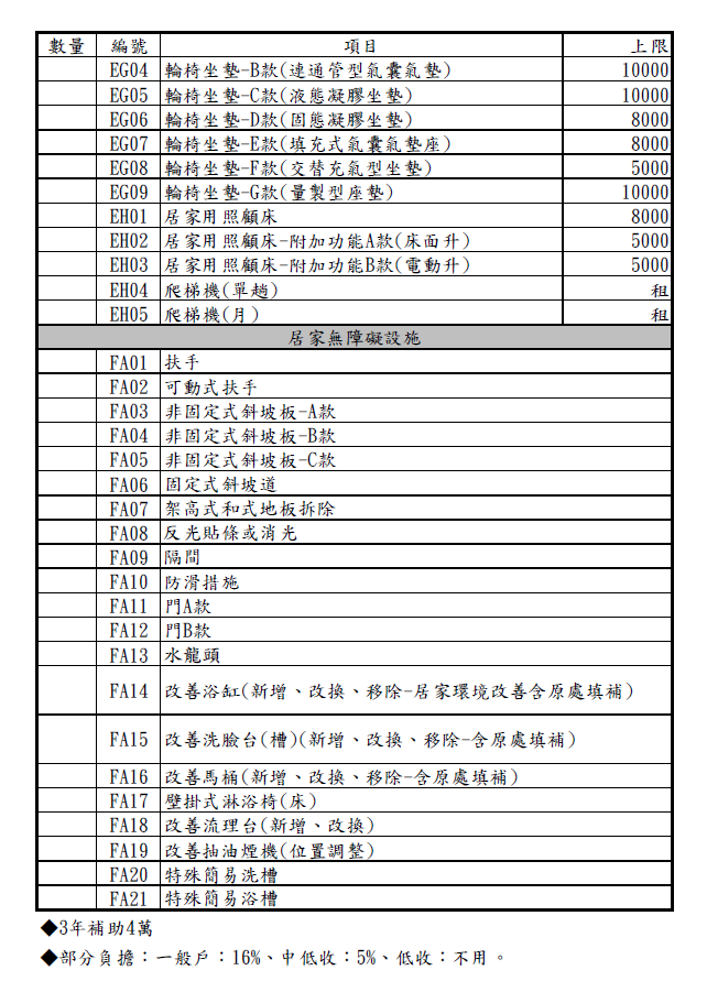 - 政府補助比例:一般戶補助84%(自付16%)、中低收入戶補助95%(自付5%)、